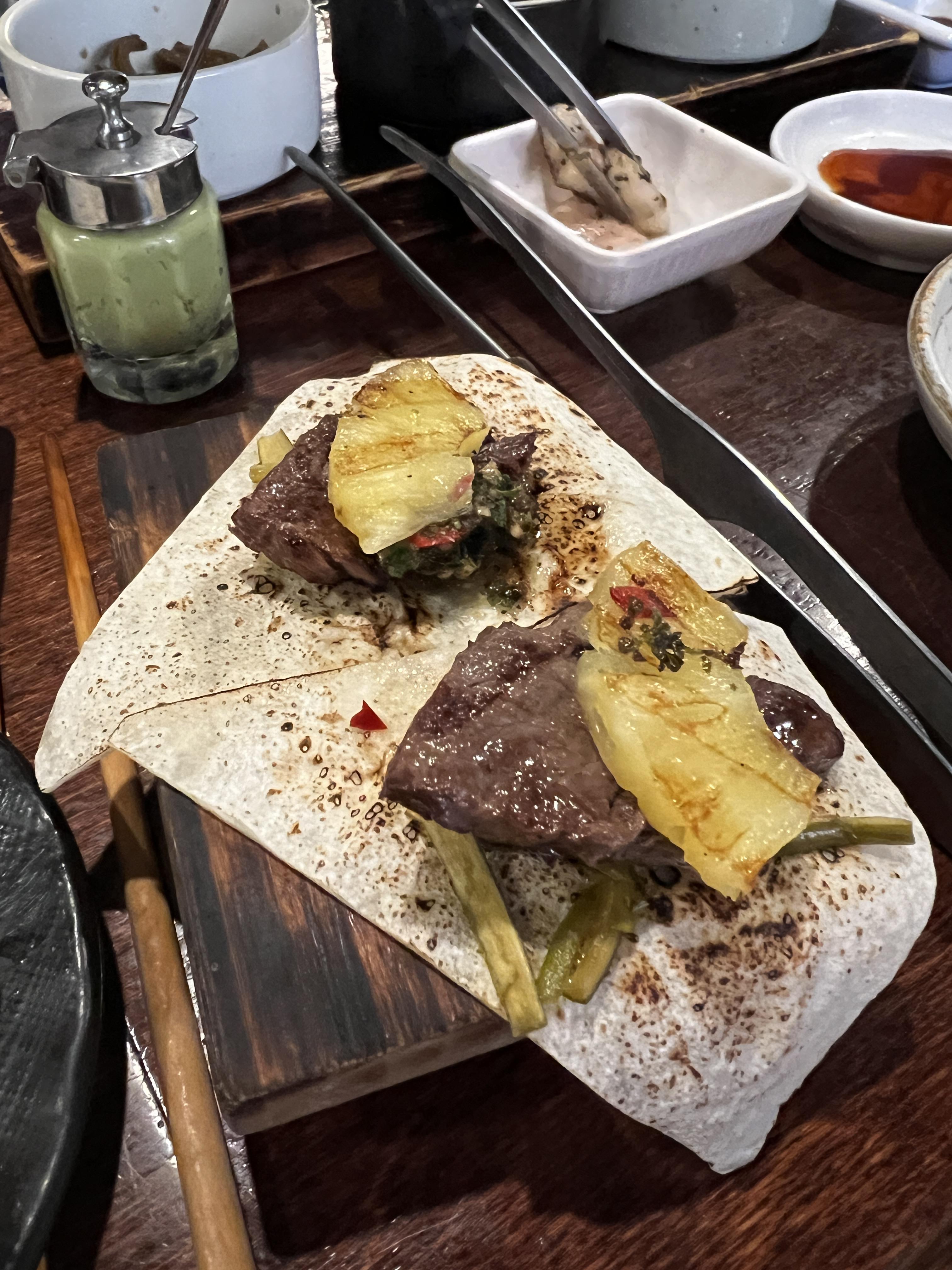 또띠아에 구운파인애플이랑 치미추리랑 ... 후아앙