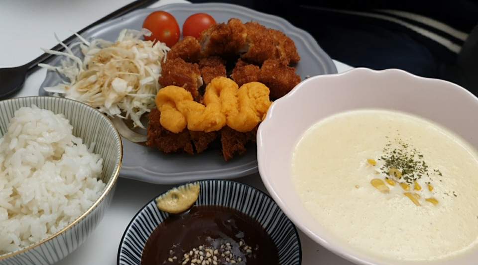 돈까스도 튀기고 옥수스스프도 직접만들고(+양파,감자) 고구마 무스까지