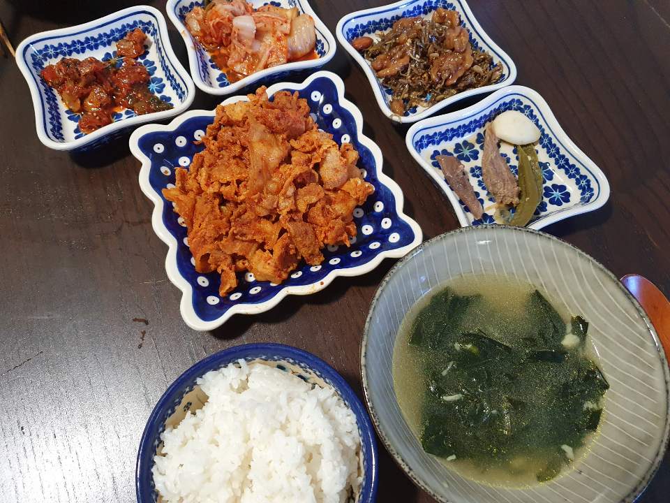 제육볶음 + 미역국 + 밑반찬