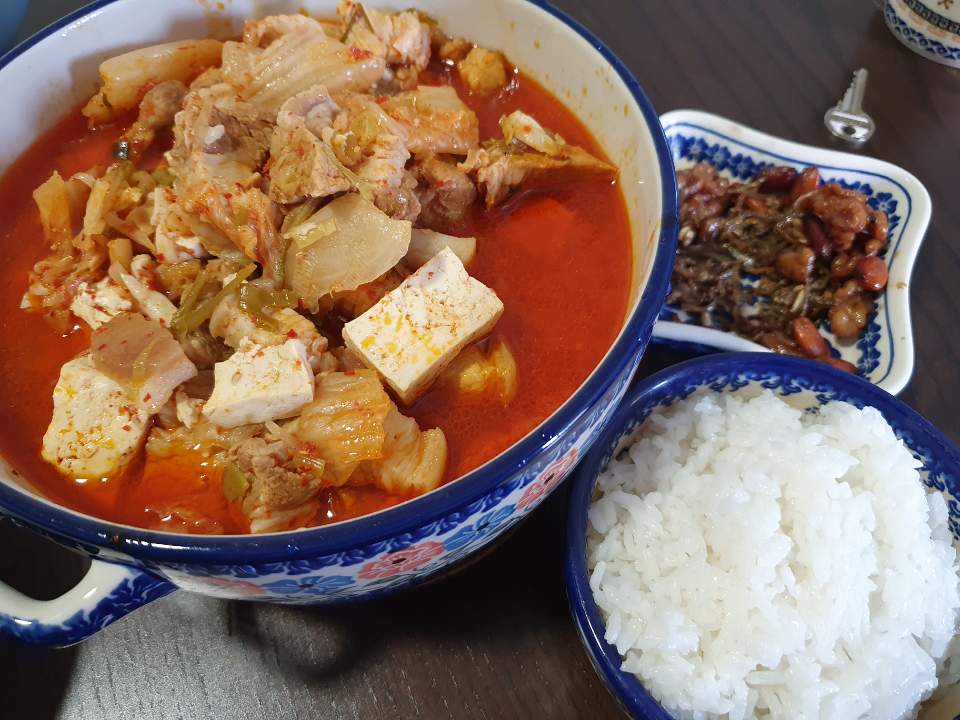 삼겹살이 거의1kg쯤들어간 김치찌개